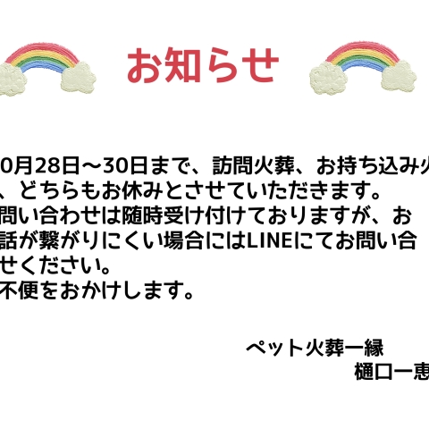 - 2025/10/28 🌈お休みのお知らせ🌈 続きを読む